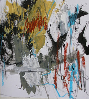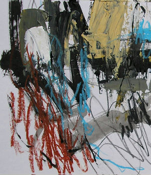 The first few weeks of lockdown found me unable to carry on with work I had been doing or planned to do, I felt sort of stuck, even going to the studio was a challenge! But then I Started to realize that I now had more time to paint than before and less other commitments or deadlines so I decided to try and think of it as 'taking time out' and just do work I 'felt' like doing, and without any thoughts of 'finished pieces' for the time being anyway, so I started to do lots of explorations and several sets or series of 6 small pieces and A2 ones, using inks acrylic collage mixed media, and reflecting on ways I hadn't worked for a while, as a student, and later encouraging students to do in explorations. To loosen up and try to work more spontaneously and hopefully more creatively I started to draw and paint with my right hand (I'm left handed) this gave me less control but enlivening, the intensity and variety of marks changed and it 'felt' good, I was reminded of how much I like the way my young grandchildren make marks and draw creatively. Painting onto paper on the floor while standing above it is also great but not so good for my back though!